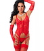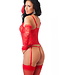 Rimba Amorable by Rimba - Corset met G-string, Handschoenen en Kousen - Rood