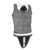 De slip van deze set is gemaakt van satijn en heeft een jockstrap model.Hij is afgewerkt met elastiek en heeft 2 flappen aan de achterkant. De stevige kraag is eenvoudig te sluiten met een drukknoop. Zowel de top als de handschoenen zijn gemaakt van visnetstof.