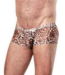 Deze boxershort is gemaakt van licht doorschijnende, rekbare stof met luipaardprint.