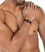 De C4M25 Gen-Ring is een accessoire dat op twee manieren kan worden gebruikt. Bij de eerste optie wordt de ring met het rode stiksel direct achter het scrotum geplaatst, waardoor versteviging ontstaat.Bij de tweede optie wordt de bijpassende zwarte armband om de pols gedragen.