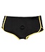 Duik in een wereld waar comfort en functionaliteit samenkomen met de Boundless Black & Yellow Brief. Dit premium harnas lijkt op een gewone slip, biedt discreet extra plezier tijdens intieme momenten. Gemaakt van zacht, rekbaar materiaal met dubbele stiksels, het garandeert langdurig comfort. Met een binnenzak voor je favoriete stimulator (niet inbegrepen) en een versterkte O-ring voor verschillende probes, is het een stijlvolle aanvulling op je intieme garderobe.