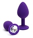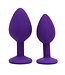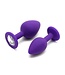 Set van 2 anaalpluggen in 2 verschillende maten met een decoratie van kristal aan de onderzijde   Dit mooie anale sierraad is gemakkelijk te dragen en garandeert plezier voor hem en voor haar. De eivormige gedeeltes van de pluggen hebben een afmeting van Ø 28 x 44 mm & Ø 35 x 50 mm. De pluggen zijn gemaakt van zachte silicone en zijn verkrijgbaar in 3 verschillende kleuren: zwart (2525), paars (2526) en roze (2527).   Onze Rimba buttpluggen zijn verkrijgbaar in verschillende maten (XS – S - L), kleuren (zilver, goud, roségoud & multicolor) en uitvoeringen (rond kristal, hartvormig kristal, met staart & met LED-verlichting). Klik hier om ze allemaal te bekijken!