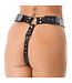 Dankzij de gespen is dit handgemaakte harnas zowel aan de zijkanten als aan de onderkant verstelbaar. De strap-on wordt geleverd inclusief 3 ringen (45 – 50 – 55 mm) om een dildo mee te bevestigen. Deze blijft op zijn plek dankzij de gespen aan de voorkant.