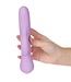 Kies tussen de twee onafhankelijk geregelde motoren voor stimulatie van de clitoris en/of g-spot. De externe stimulator heeft een ronde kap die de clitoris zachtjes omsluit voor een gericht genot. Terwijl de externe motor zijn magie doet, is de interne g-spot-stimulator licht gebogen voor optimale stimulatie. Bedien één of beide motoren met de twee knoppen aan de onderkant van het speeltje door geleidelijk de snelheid van een van de functies te verhogen.